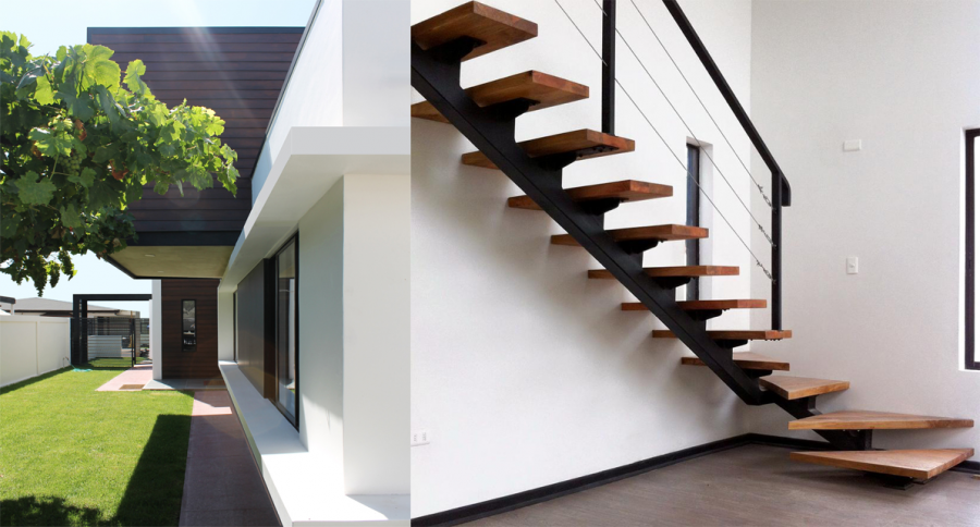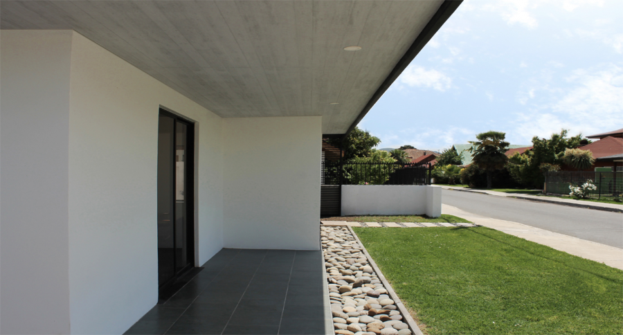 La estrategia de intervención fue que la casa reflejara este proceso de superposición de capas mediante el uso de distintas materialidades que distinguen claramente el primer nivel del segundo, potenciando así el juego volumétrico en voladizos y distintas situaciones espaciales que se generan por contraposición entre los dos niveles.